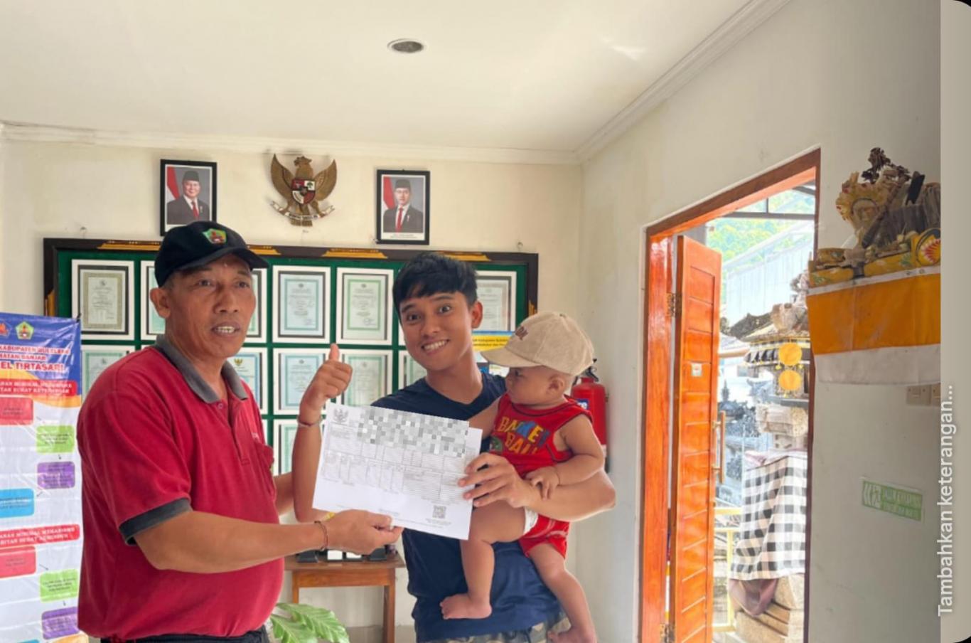 Bertempat di kantor pemerintahan desa Tirtasari, Bapak Kelian Banjar Dinas Dauh Margi menyerahkan dokumen berupa Kartu Keluarga (KK) dan Akta kelahiran serta melakukan pendaftaran Identitas Kependudukan Digital ( IKD ) kepada warga masyarakat atas nama I Gede Kusuma Anandika dan Komang Budarniwi.