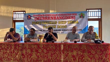 Bertempat di aula kantor pemerintahan desa, Perbekel tirtasari Gde Riassa bersama dengan BPD, perangkat desa, Bhabinkamtibmas , LPM dan berbagai unsur yang ada di desa melaksanakan pembentukan P4GN, Kadarkum dan Posbankum Desa serta Re organisasi kepengurusan LPM.