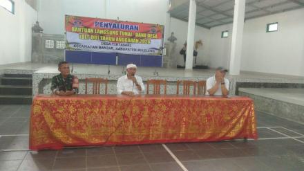 Bertempat di gedung serbaguna Desa Tirtasari telah dilaksanakan kegiatan penyaluran BLT DD Januari-Maret pada hari Kamis 2/4. KPM Blt pada tahun ini berjumlah 32 KPM dimana masing-masing KPM menerima Rp. 150.000. Kegiatan ini dihadiri oleh Kelian Banjar Dinas Dauh Margi, Kaur Perencanaan dan Babinsa. Kegiatan ini berjalan dengan lancar.
